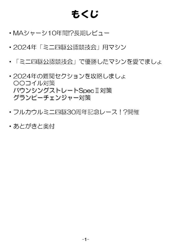 2024年に流行ったミニ四駆セッティングなどをまとめた本です。